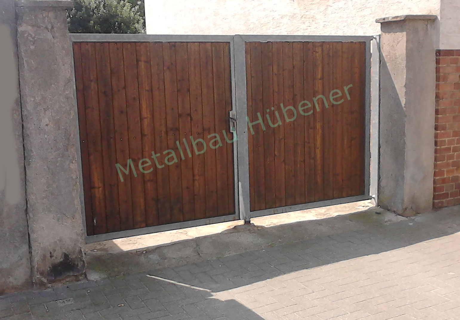 Tore verzinkt, pulverbeschichtet, mit Verzierungen und Füllung.